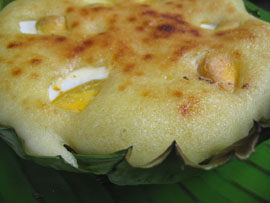 Bibingka is a type of bakedrice cake from the Philippines. It is usually eaten for breakfast, especially during the Christmas season. It is traditionally cooked in clay pots lined with leaves. It is a subtype of kakanin (rice cakes) in Philippine cuisine. Bibingka is also found in Christian communities in eastern Indonesia.