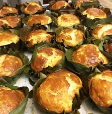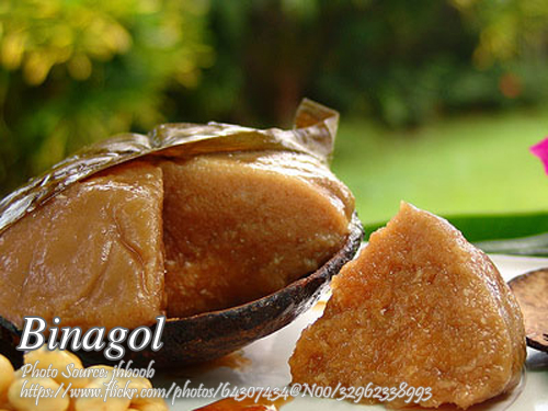 Binagol is a Filipino sweet steamed delicacy made from mashed giant tarocorms, condensed milk, sugar, coconut milk, and egg yolks. It is distinctively placed in half of a coconut shell and then wrapped in banana leaves and twine. The name means “to place in a coconut shell”, from Visayanbagol, “coconut shell”. Binagol traditionally use the corms of the giant taro (locally known as talyan or talian), however, the corms of taro (locally known as gabi) can also be used. The delicacy originates from the islands of Leyte and Samar in the Eastern Visayas.[1][2][3][4]